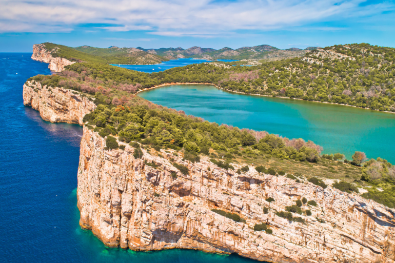 If one island truly deserves the title “island of lakes,” it is Mljet. Its uniqueness lies in a combination of saltwater lakes and smaller inland water formations.