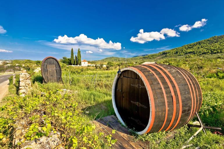 Wine barrels on Stari Grad plain, UNESCO world heritage site in Hvar island